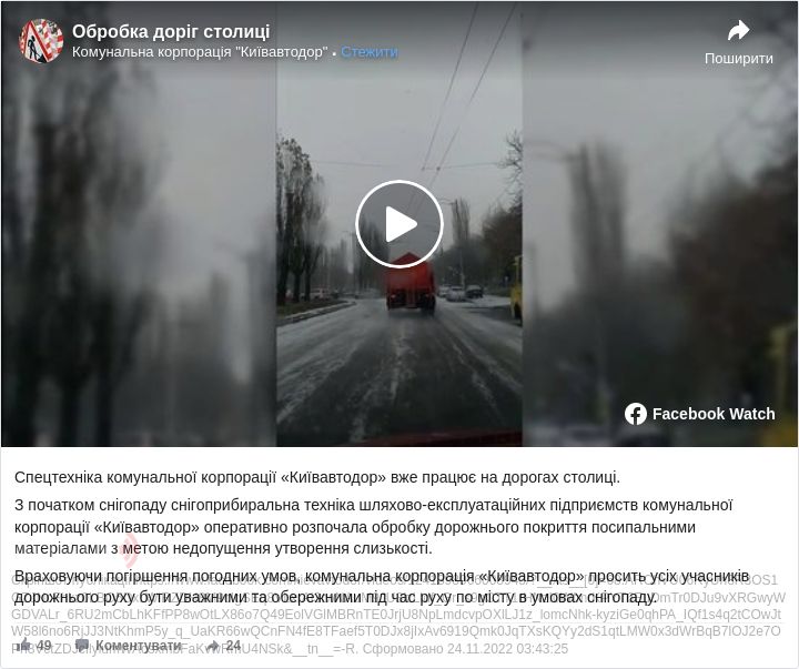 Водночас, комунальники закликають усіх учасників дорожнього руху враховувати погіршення погодних умов, бути уважними й обережними під час руху містом в умовах снігопаду.