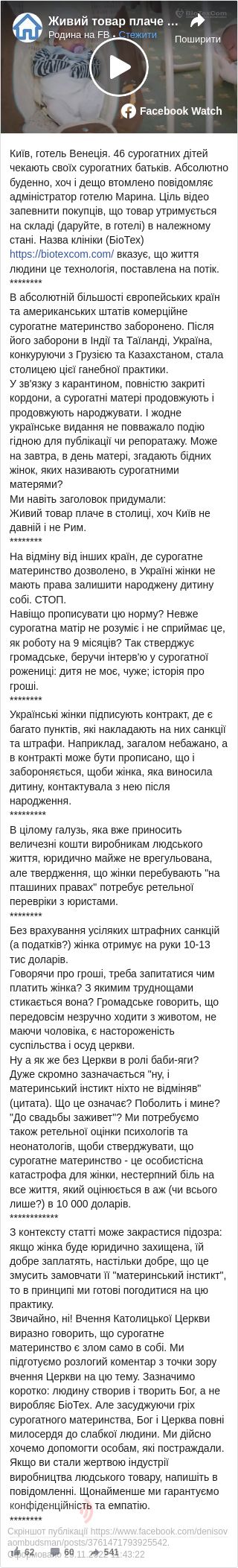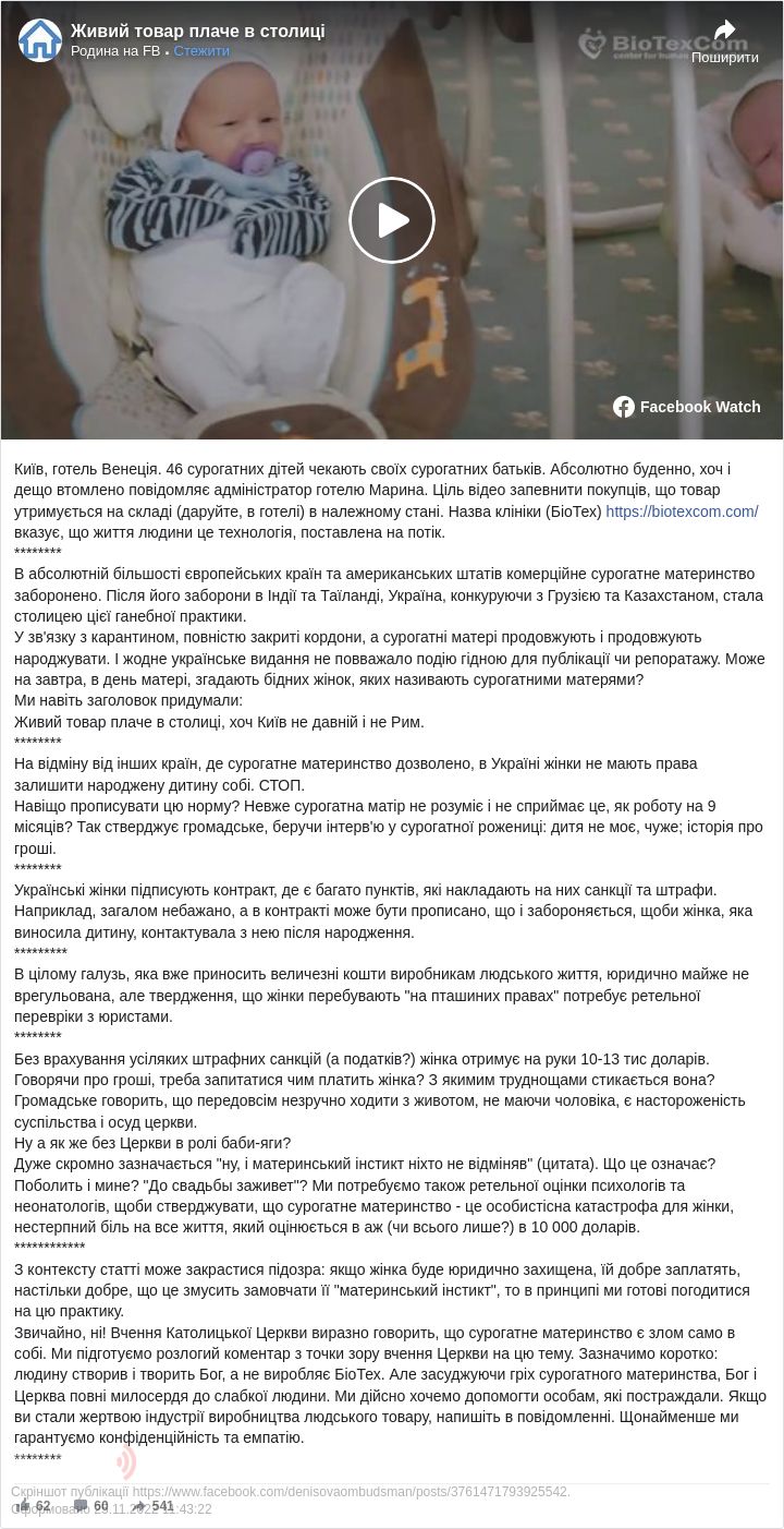 Відео, яке опублікувала клініка репродуктивної медицини BioTex, призначене для сурогатних батьків із різних країн: США, Італії, Іспанії, Великої Британії, Китаю, Франції, Німеччини та інших.