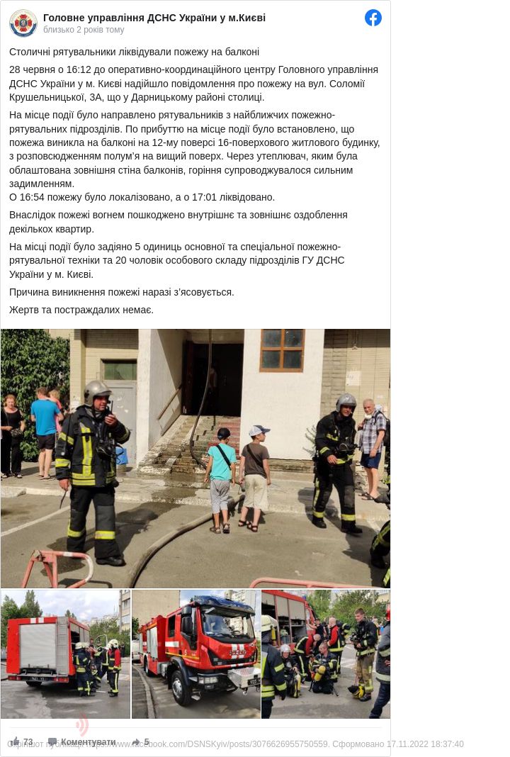 Незважаючи на складності, рятувальникам вдалося усе ліквідувати. Інформація про пожежу надійшла о 16:12, а через 50 хвилин вогонь загасили.