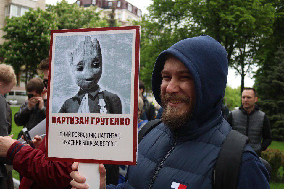 Активісти прийшли з фотографіями героїв фільму «Месники», стилізованих під радянських солдат. Зокрема, прапорщик Торенко (Тор), сержант Локиренко (Локі) та рядовой «Ракета».