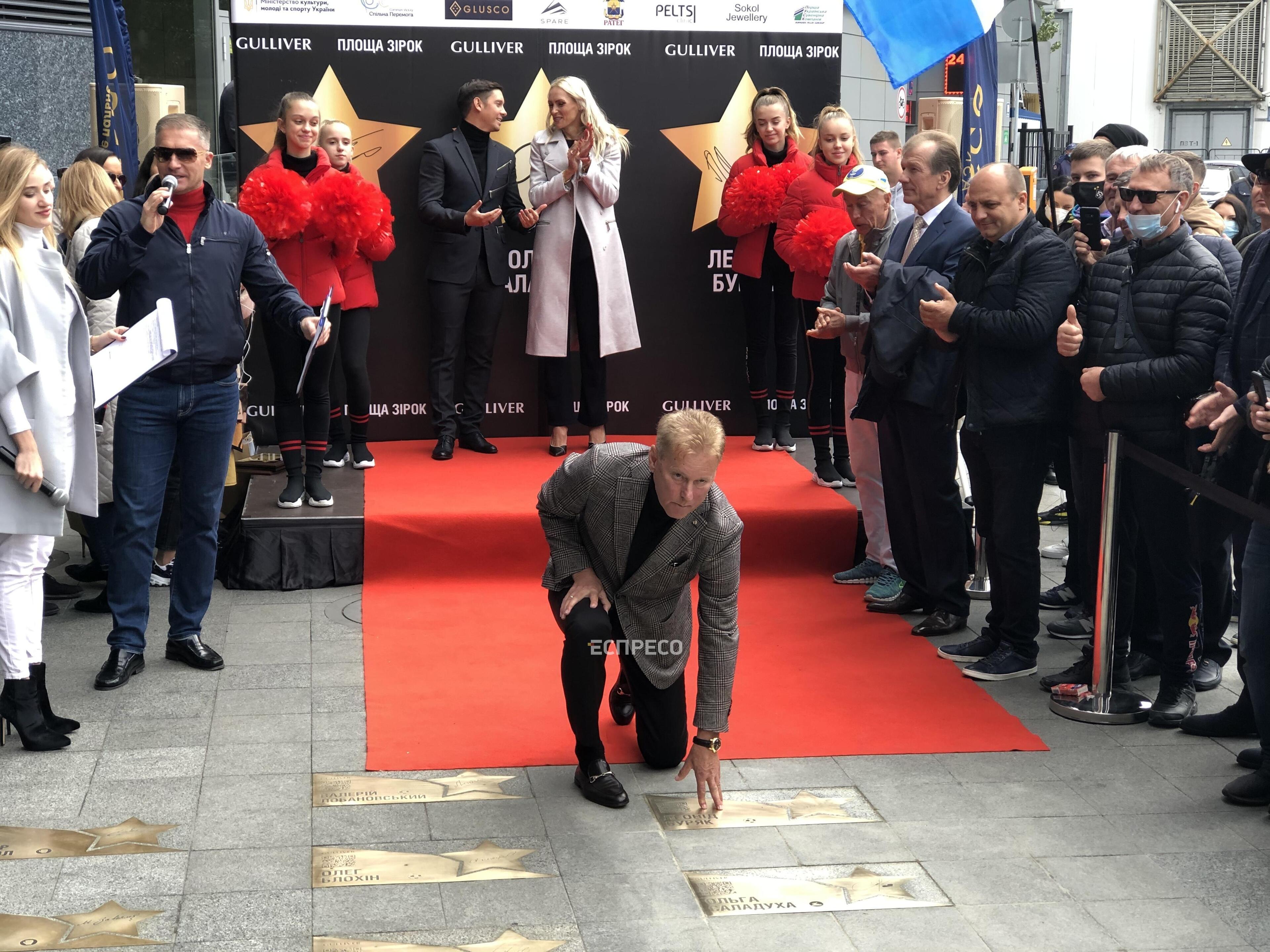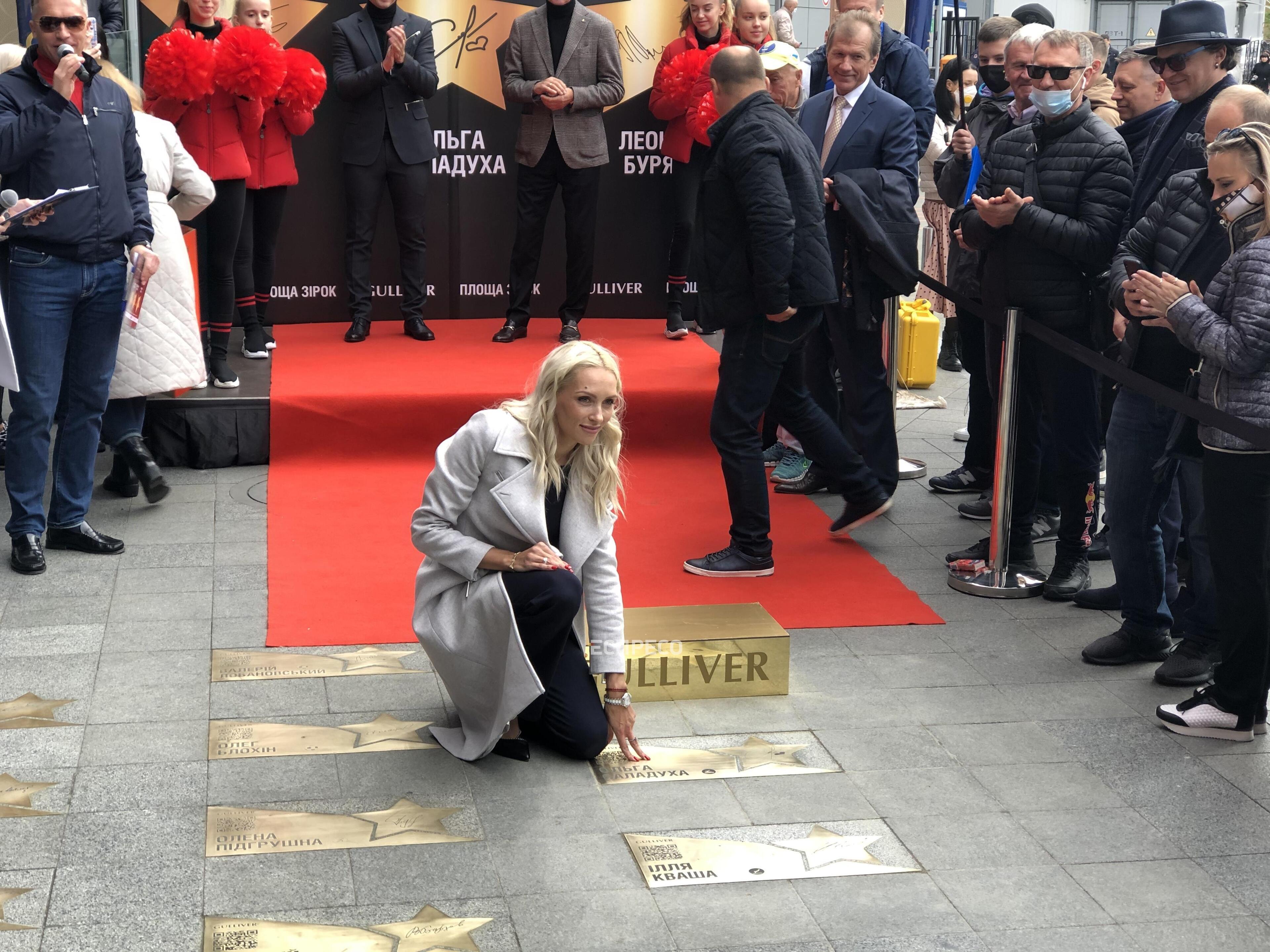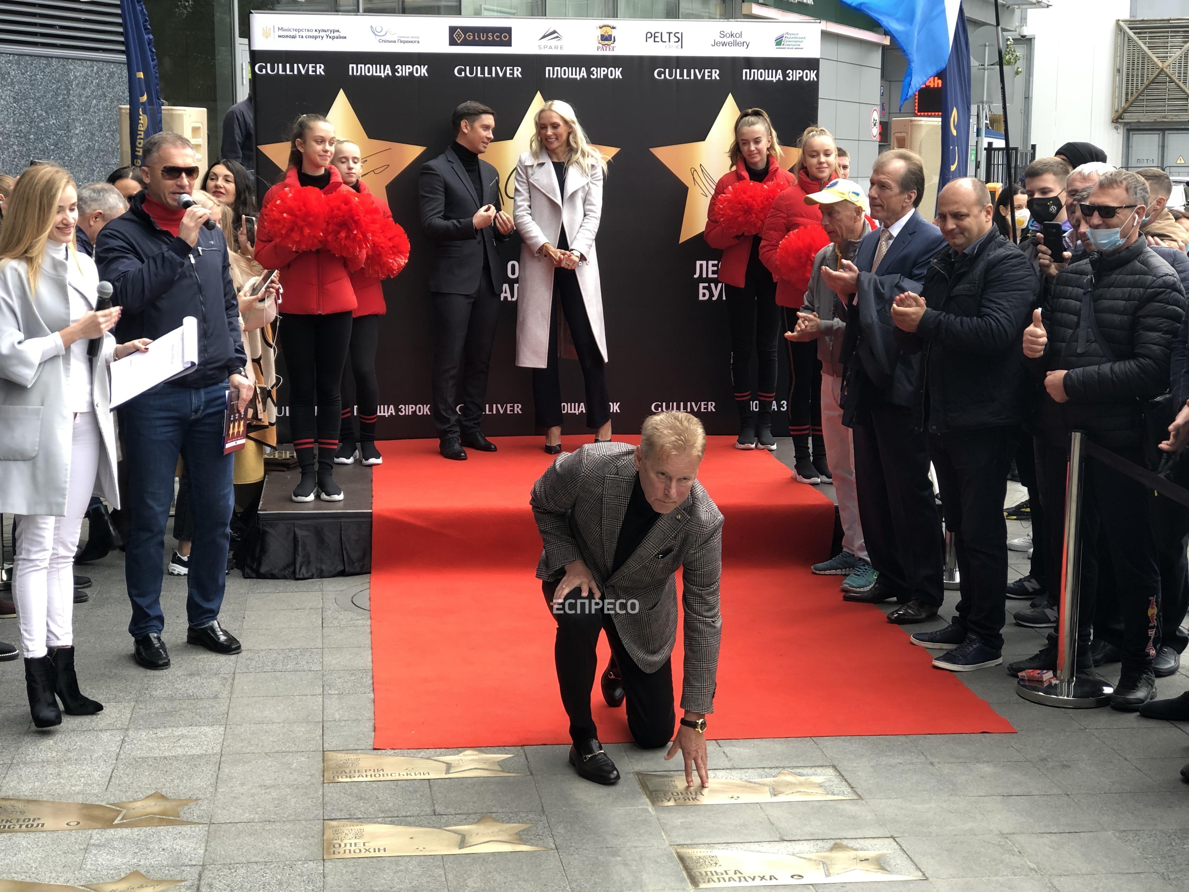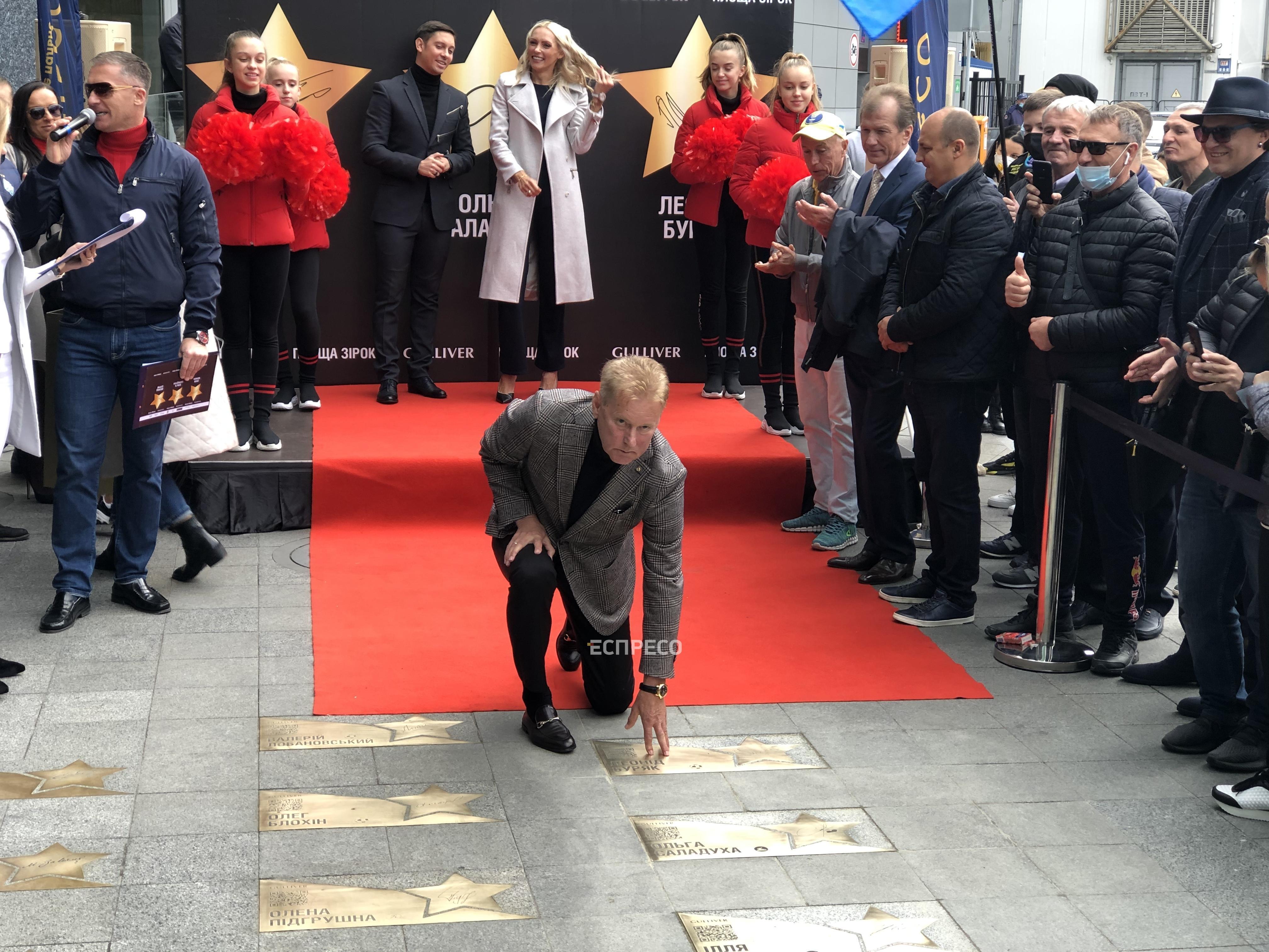 У Києві на «Площі зірок» відкрили зірки легкоатлетці Ользі Саладусі, стрибуну у воду Іллі Кваші та футболісту Леоніду Буряку.