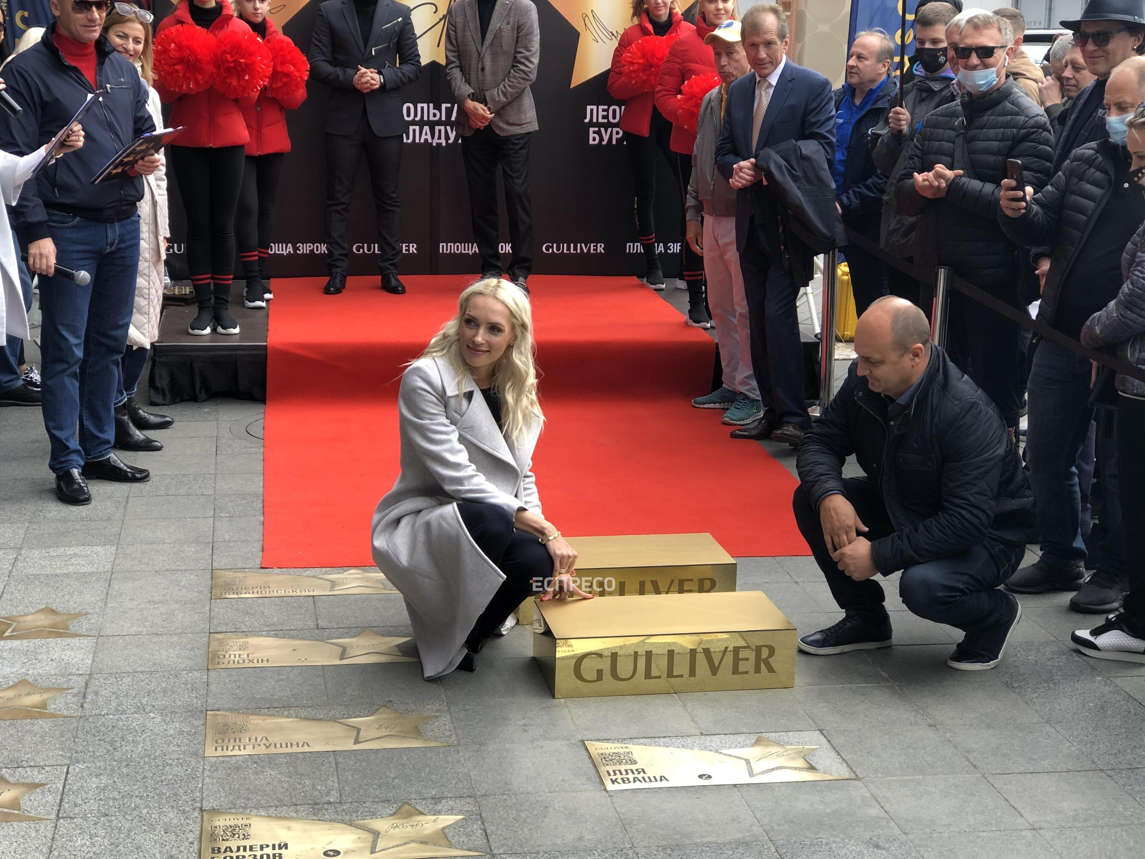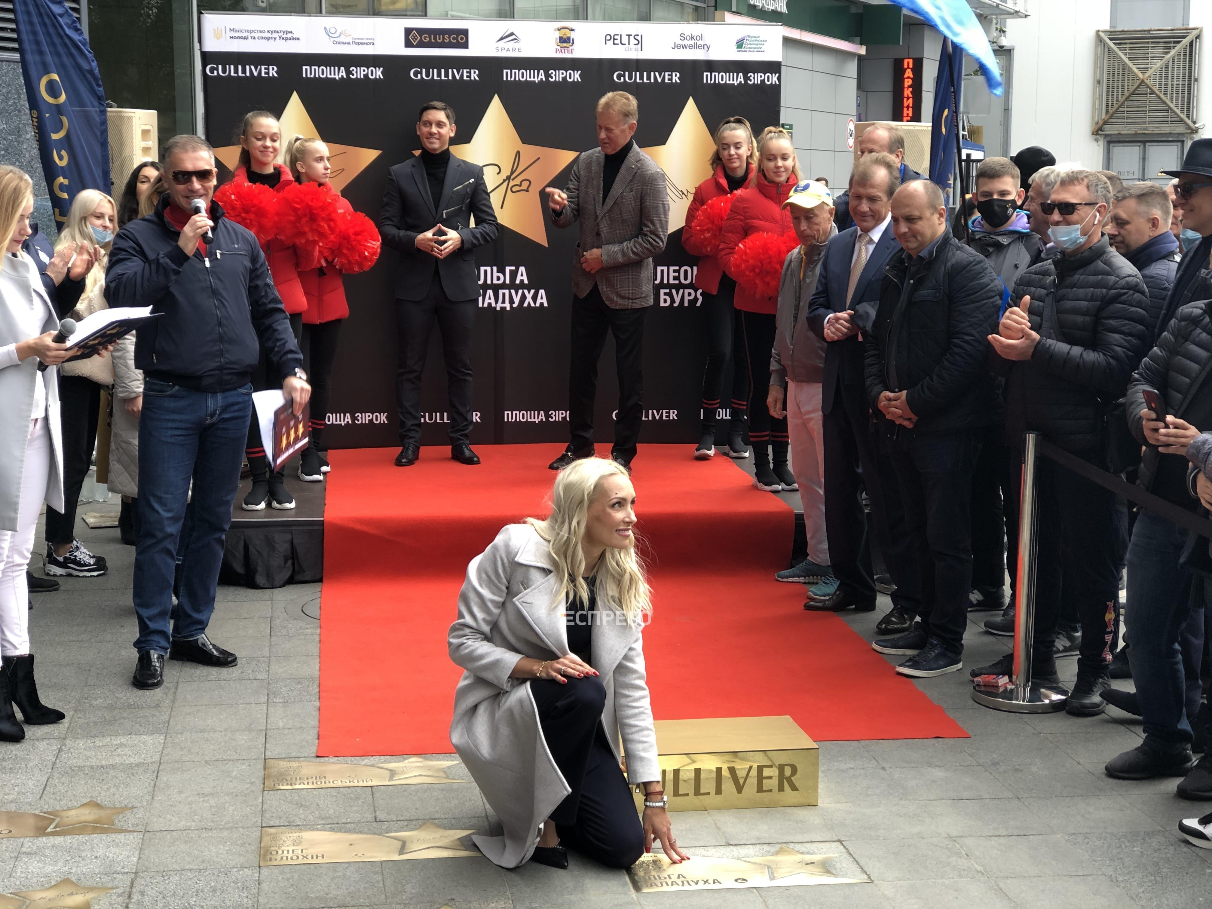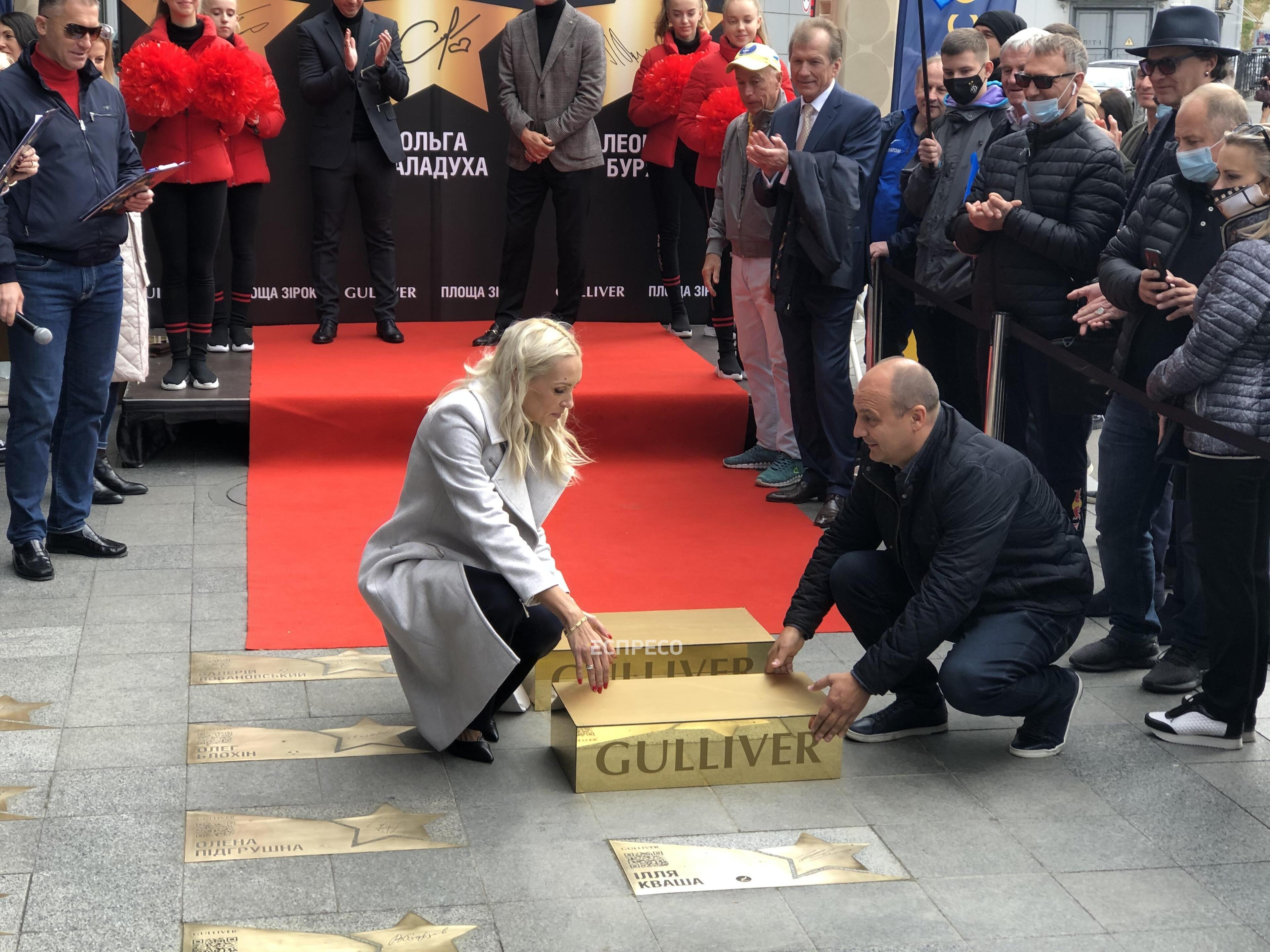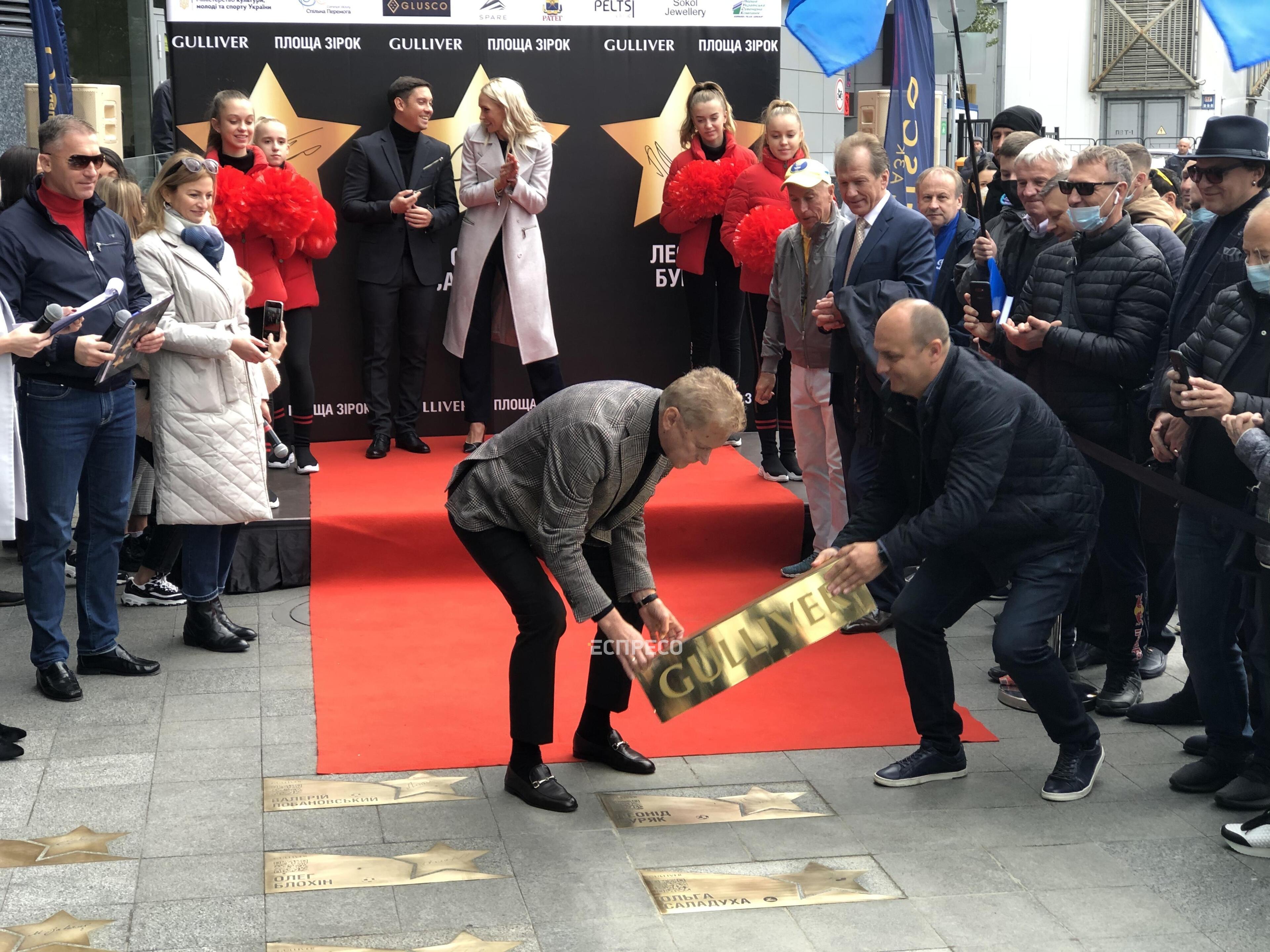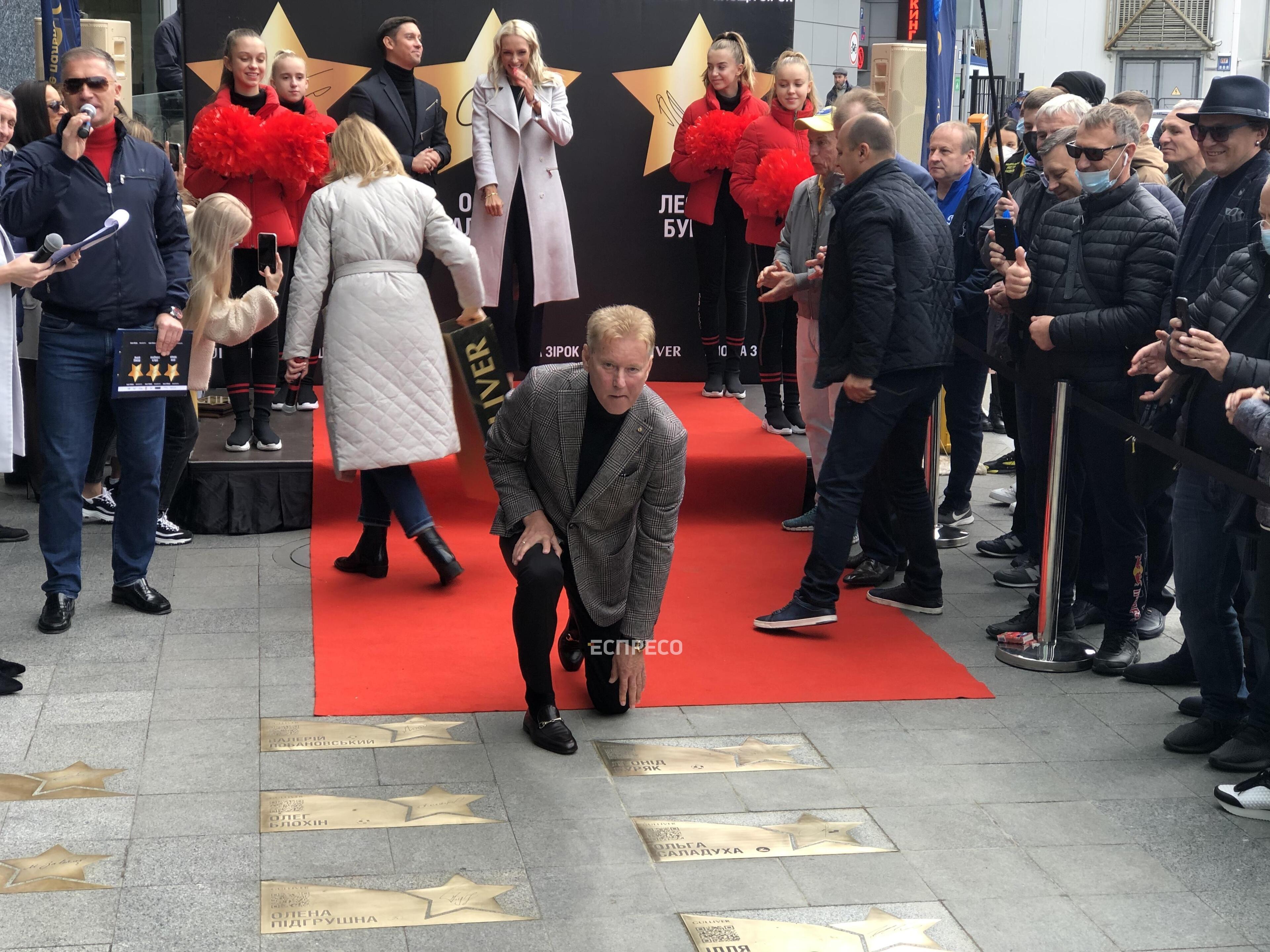 У Києві на «Площі зірок» відкрили зірки легкоатлетці Ользі Саладусі, стрибуну у воду Іллі Кваші та футболісту Леоніду Буряку.