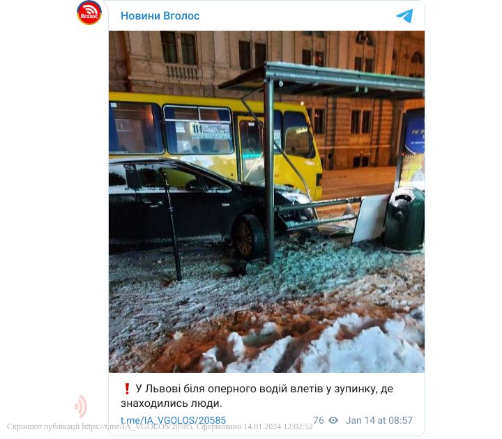 Зі слів очевидців, водій проїхав на червоний сигнал світлофора та в’їхав у зупинку громадського транспорту біля оперного театру, на якій перебували люди.