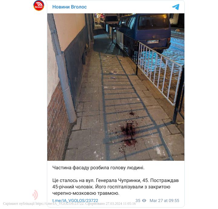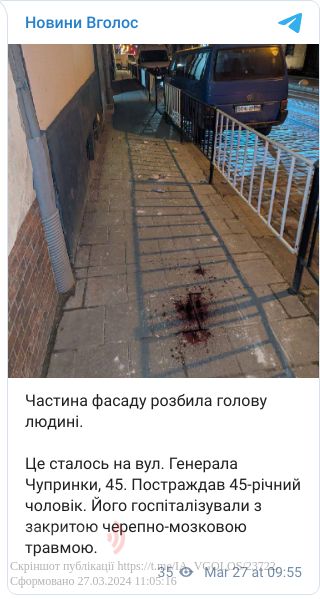 Інцидент трапився близько 21:40 години на вул. Чупринки. За попередніми даними, постраждав 45-річний чоловік. Його госпіталізували з закритою черепно-мозковою травмою.