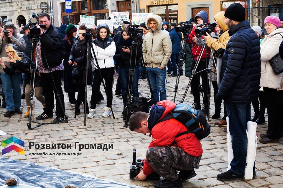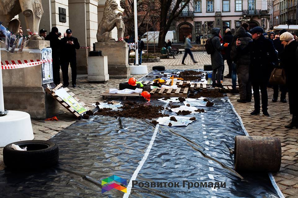 До пікету приєдналися близько сотні небайдужих львів’ян. Перед початком заходу представники ГО "Розвиток громади" сконструювали, перед входом у Ратушу, дорогу з болота, по якій, аби потрапити на роботу, проходили чиновники міськради. Таким чином активісти нагадали посадовцям про проблеми у місті, з якими щодня зіштовхуються сотні тисяч містян.