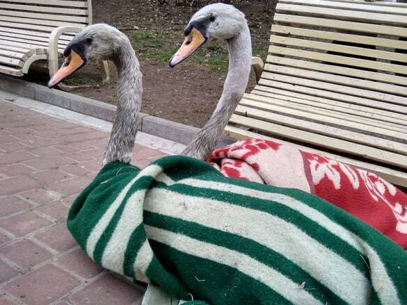 Відомо, що зиму птахи провели у спеціальному приміщенні в парку «Знесіння». Там їм давали доступ до води та забезпечували харчуванням.