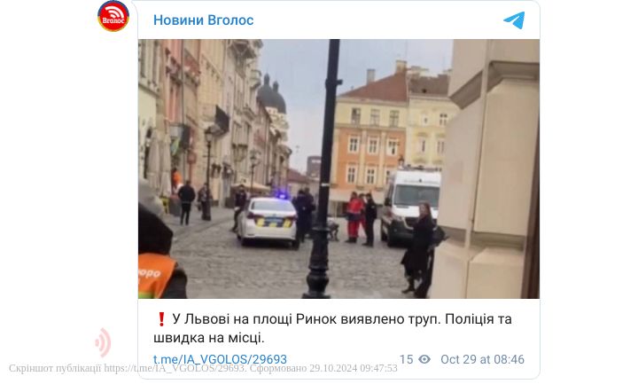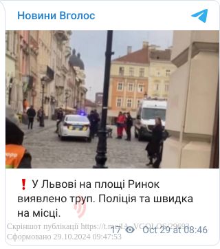 Сьогодні, 29 жовтня, вранці у центрі Львова виявили труп людини.
