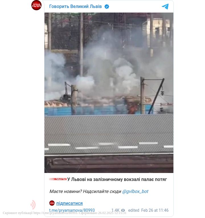 Сьогодні на залізничному вокзалі у Львові загорівся потяг.