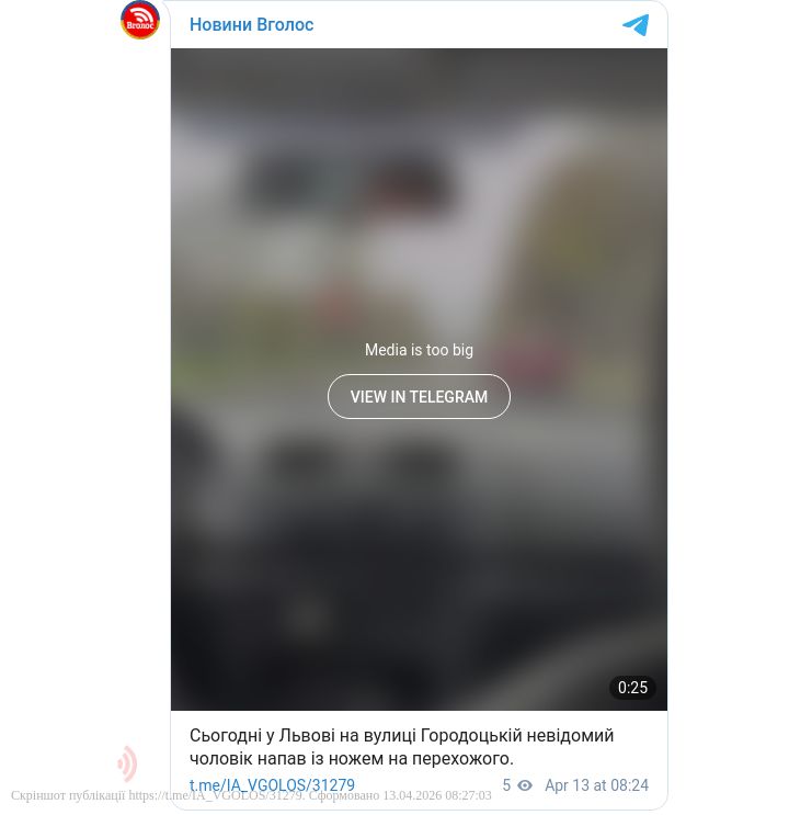 Сьогодні у Львові на вулиці Городоцькій невідомий чоловік напав із ножем на перехожого.