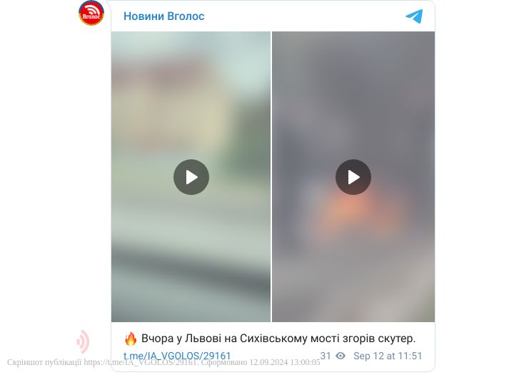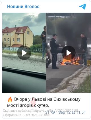 У середу, 11 вересня, на Сихові під час руху загорівся електроскутер. Внаслідок пожежі ніхто не постраждав.