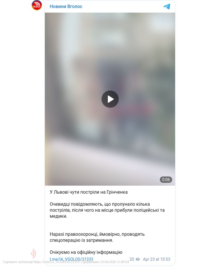 Перші офіційні дані від поліції про стрілянину у Львові.