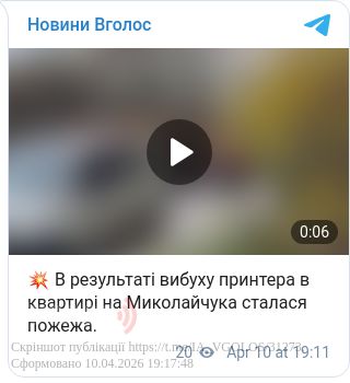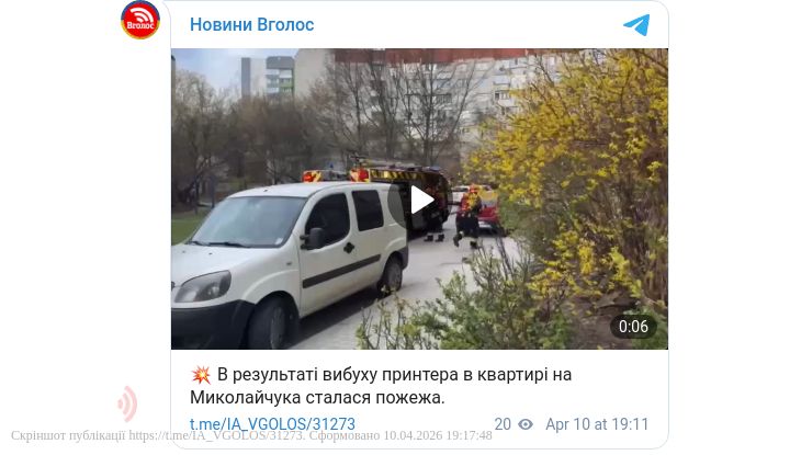 В результаті вибуху принтера в квартирі на Миколайчука сталася пожежа.