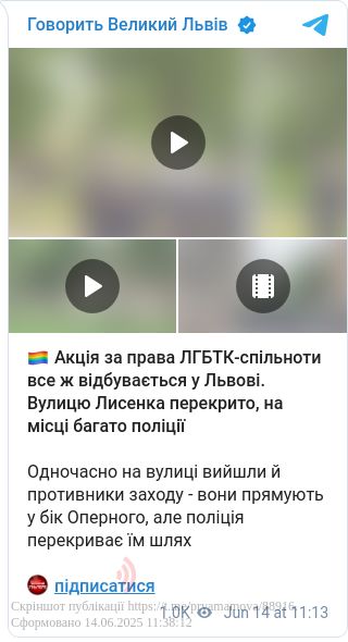 Нагадаємо, 14 червня, у Львові представники 21 громадської організації планують провести публічні заходи.