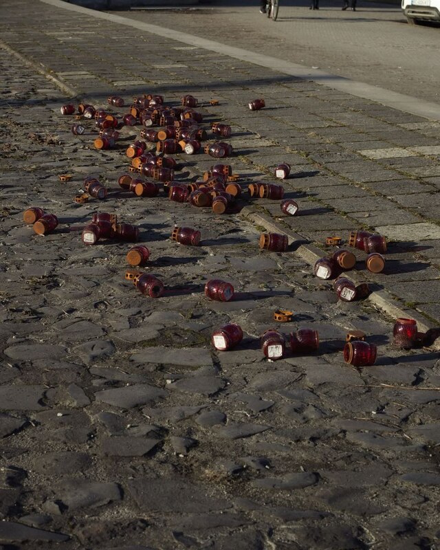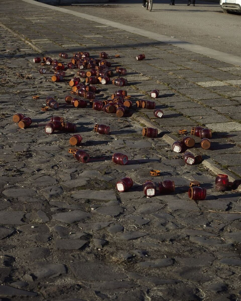 Зловмисник пошкодив лампадки, які були встановлені під виставкою з портретами загиблих в Оленівці українських захисників.