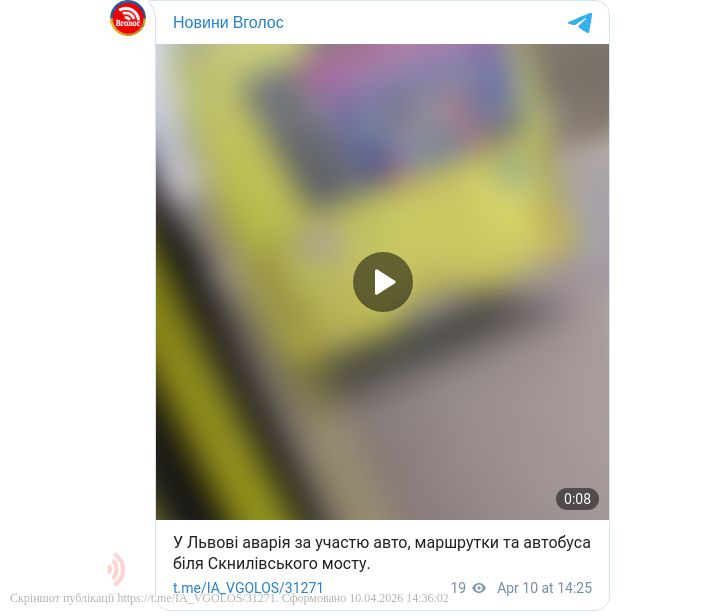 У п'ятницю, 10 квітня, сталася аварія двох маршруток у Львові.