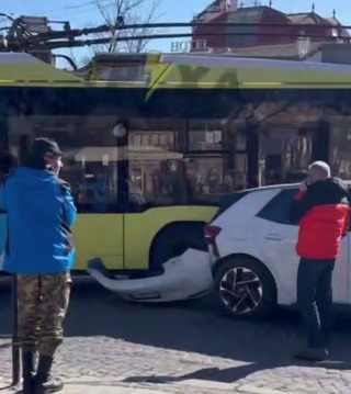 У понеділок, 9 березня, в аварію в центрі Львова потрапили легковик та тролейбус.