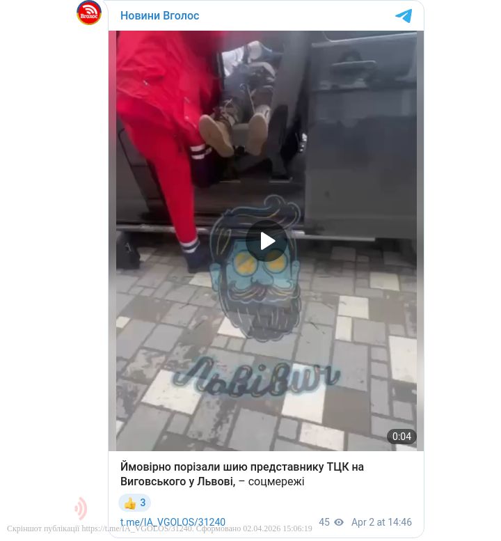 У четвер, 2 квітня, у Львові в районі вулиці Патона виник конфлікт під час перевірки військово-облікових даних між працівниками ТЦК та групою невідомих осіб.
