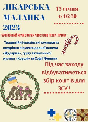 У п’ятницю, 13 січня, у Гарнізонному храмі святих апостолів Петра і Павла відбудеться традиційний благодійний лікарський захід «Маланка 2023». Захід розпочнеться о 16:30 з дотриманням карантинних вимог.