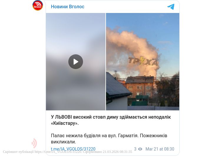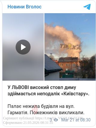 У Львові високий стовп диму здіймається неподалік «Київстару».