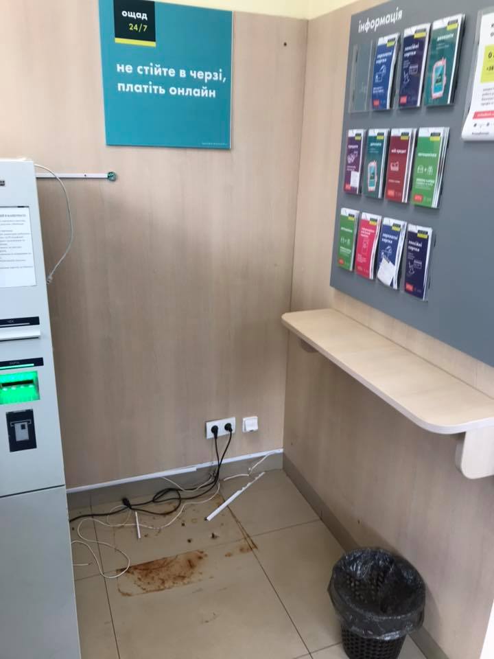 Зазначається, що невідомі проникли у приміщення, використавши картку для входу. Вони зафарбували камеру відеоспостереження та вкрали термінал.