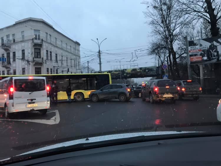 У Львові, на перехресті пр. Чорновола та вул. Під Дубом, сьогодні, 24 грудня, зіткнулись маршрутка та автомобіль.