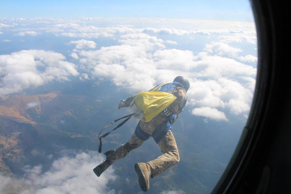 Українські військові рятувальники вперше за роки незалежності здійснили стрибки з парашутом на найвищу точку України - гору Говерлу.