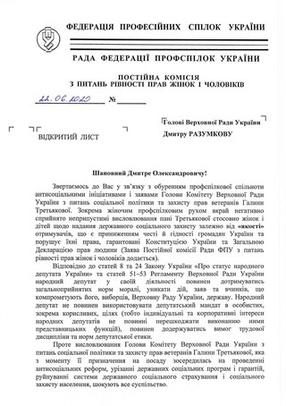Відповідну вимогу висловили у відкритому листі до голови ВРУ, опублікованому на сайті Федерації професійних спілок України.