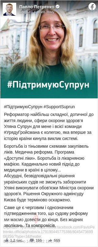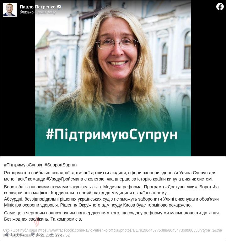 Міністр юстиції України Павло Петренко заявив про необхідність оскаржити рішення Окружного адмінсуду Києва про заборону Уляні Супрун виконувати обов'язки глави МОЗ.