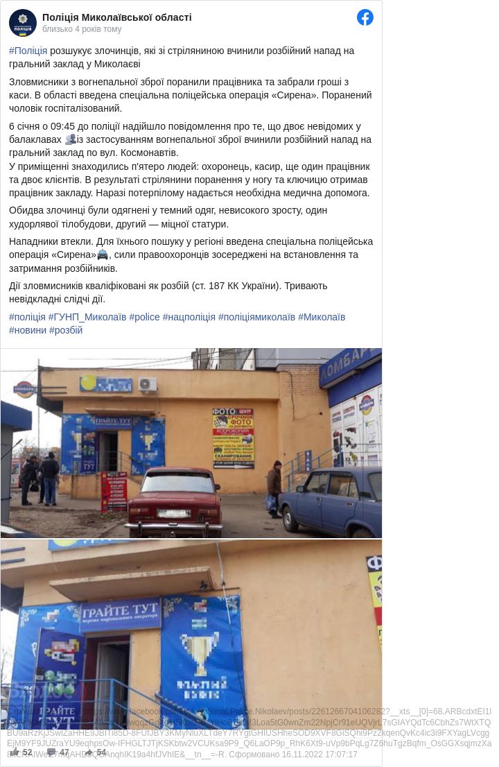 Як пише місцеве видання "Новини N", потерпілий – власник закладу. Він спробував чинити опір і отримав кулю в ногу. Після цього нападники забрали гроші і зникли. За попередньою інформацією, вони поїхали на автомобілі ВАЗ-2106 червоного кольору.