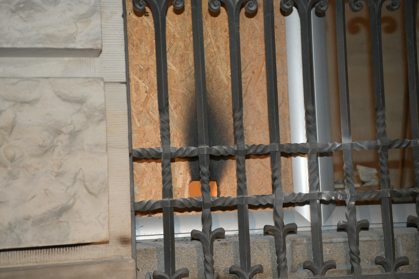 Зазначається, що о 0:30 ночі зловмисники вилили горючу рідину на ДСП, яка заміняла вікно на східній стороні будівлі, та підпалили її.