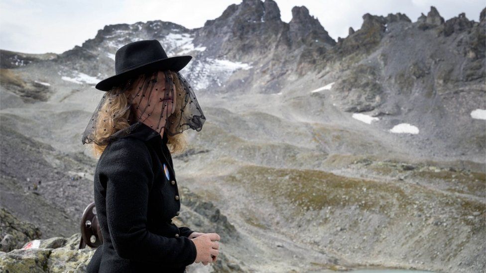 Десятки людей взяли участь в недільному «похоронному марші», щоб відзначити зникнення льодовика Пізоль.
