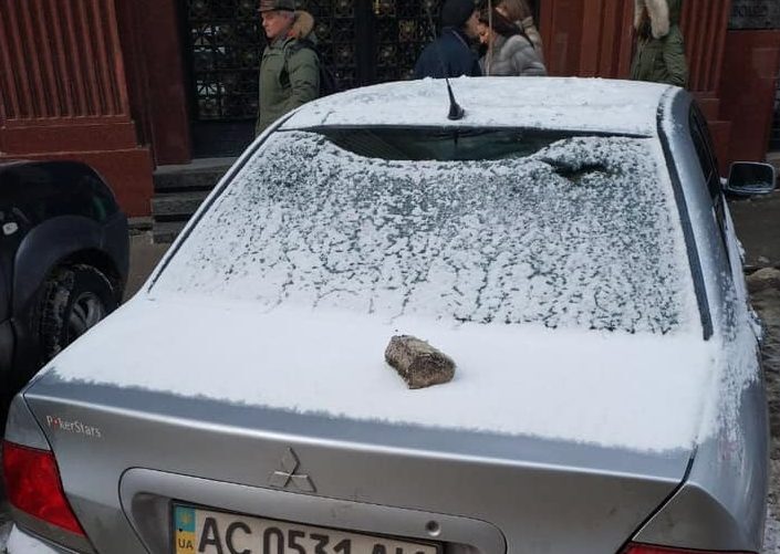 У Львові, на вулиці Коперника,4, у неділю, 27 січня, частина фасаду з історичного будинку впала на припаркований автомобіль.