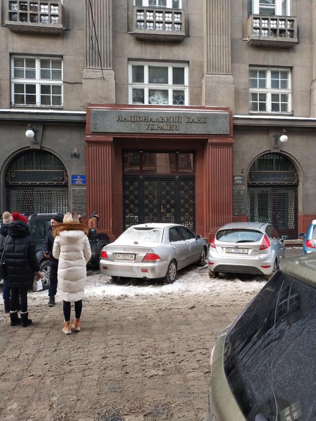 Зазначається, що фасад обвалився у будинку, в якому знаходиться львівська філія Нацбанку.