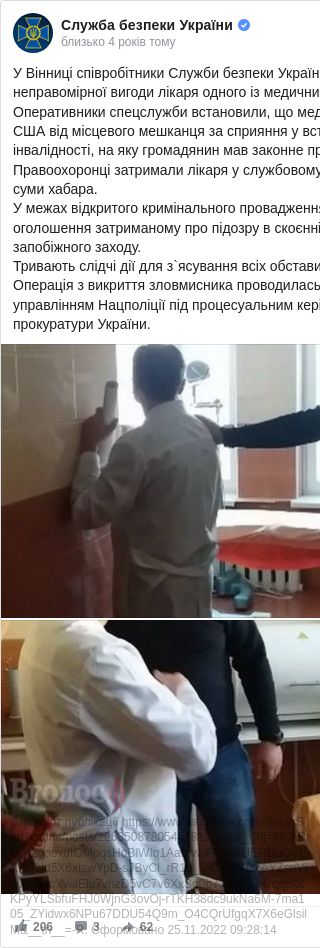 Як інформує прес-центр СБУ, медик вимагав 4 тисячі доларів США від місцевого жителя за сприяння у встановленні довічної групи інвалідності, на яку громадянин мав законне право.