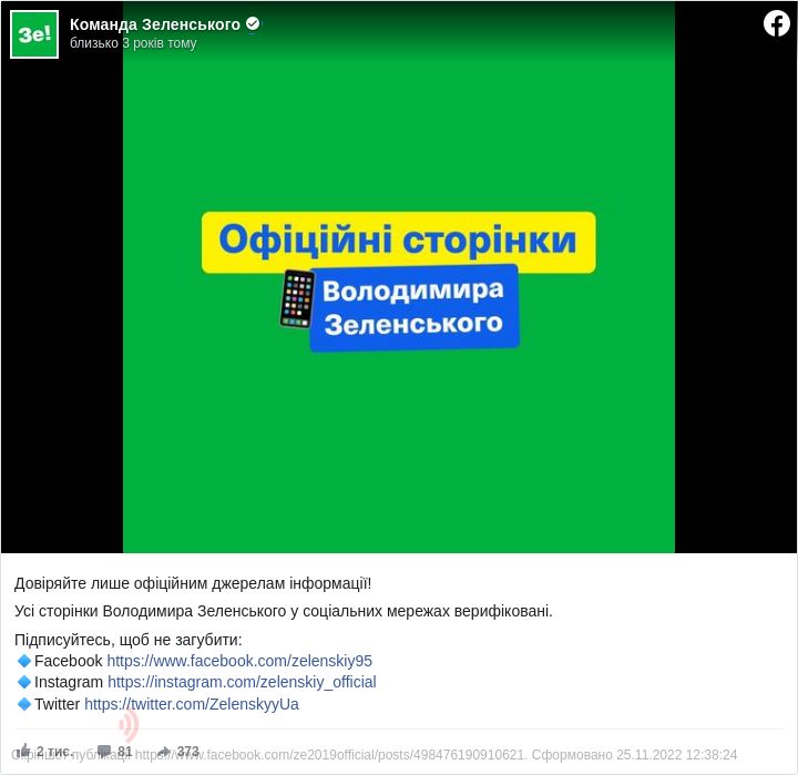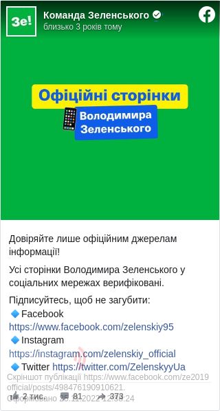 Вони також надали список сторінок Зеленського у «Фейсбук», «Твіттер» та «Інстаграм» і закликали підписуватися, щоб не загубити».