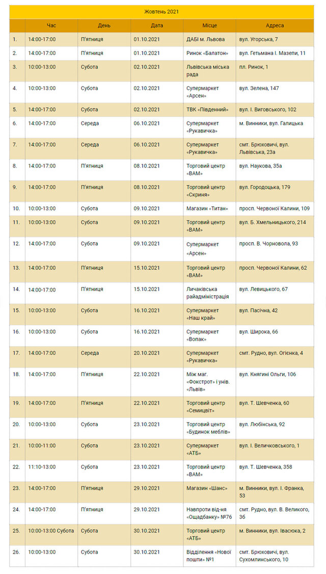 У всіх районах Львова працюватимуть мобільні пункти збору, в які громадяни можуть приносити небезпечні відходи. Також стоянки еко-бусів будуть у Винниках, Брюховичах та Рудному.