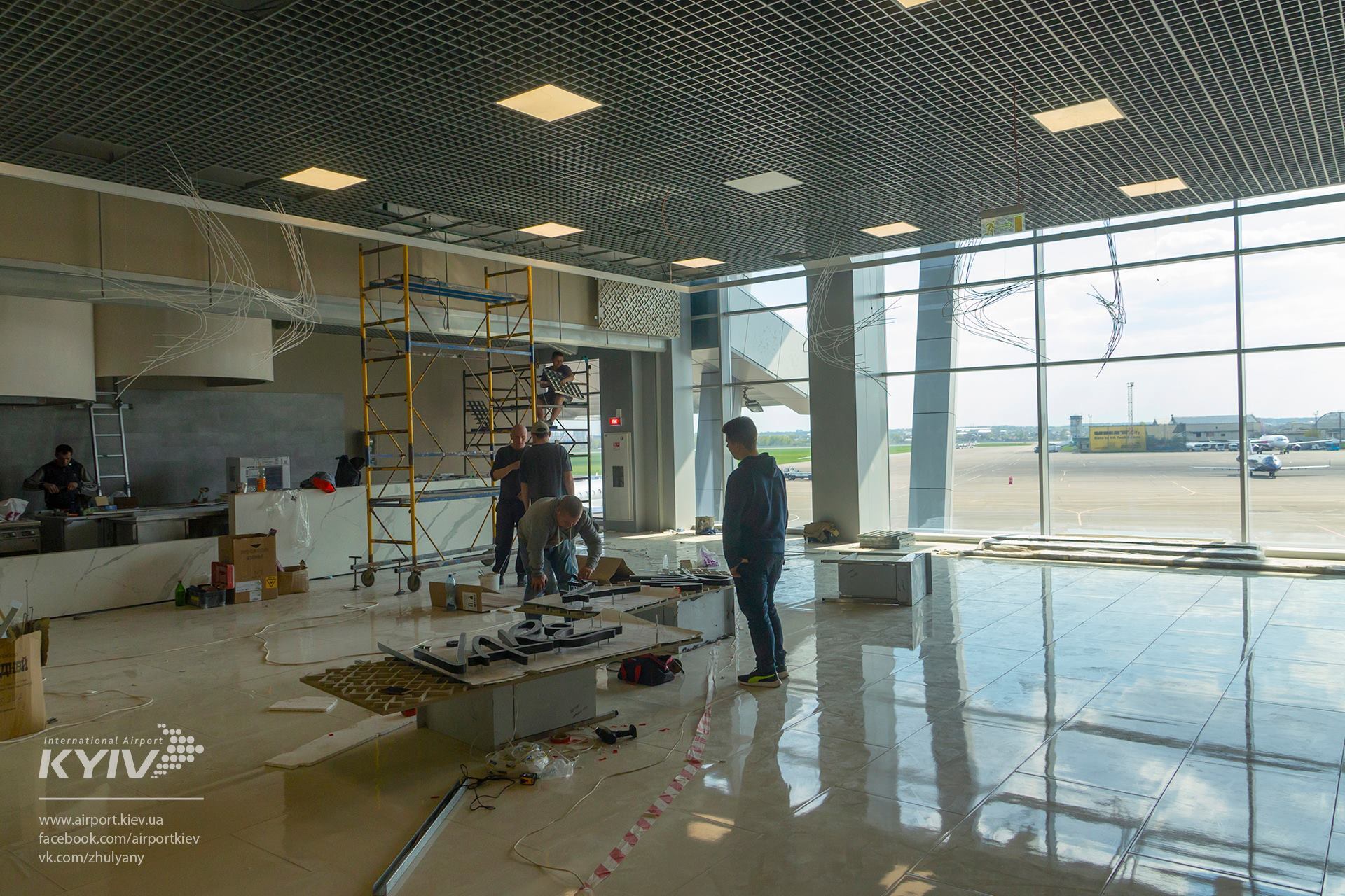 «18 стійок прикордонного контролю вже встановили на другому поверсі. Пасажири будуть проходити його швидше і потрапляти в комфортну зону очікування з ресторанами, барами, магазинами дьюті-фрі і зоною розваг з окулярами віртуальної реальності. Сума залучених у проект коштів оцінюється в 630 млн грн», – йдеться в повідомленні.