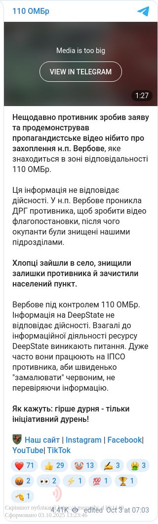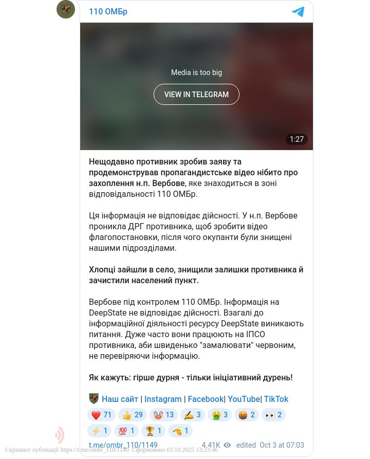 Російські пропагандисти заявили, що нібито взяття під контроль село Вербове у Запорізькій області. Також росіяни поширили поставне відео з своїм прапором