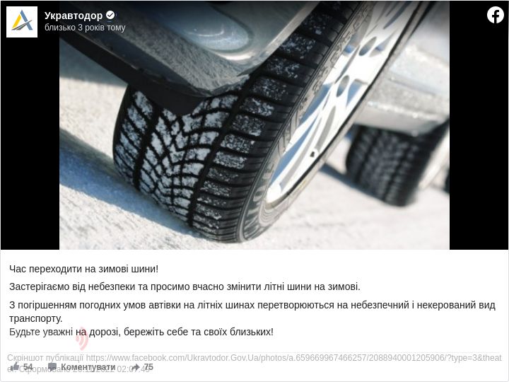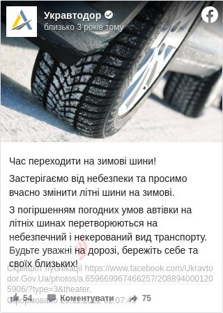 Державне агентство автомобільних доріг («Укравтодор») звернулося з проханням до українських водіїв щодо підготовки своїх транспортних засобів для поїздок у зимову пору.