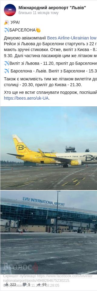 Раніше, 20 грудня, Bees Airline почала виконувати польоти зі Львова до Праги (щопонеділка та щоп'ятниці).