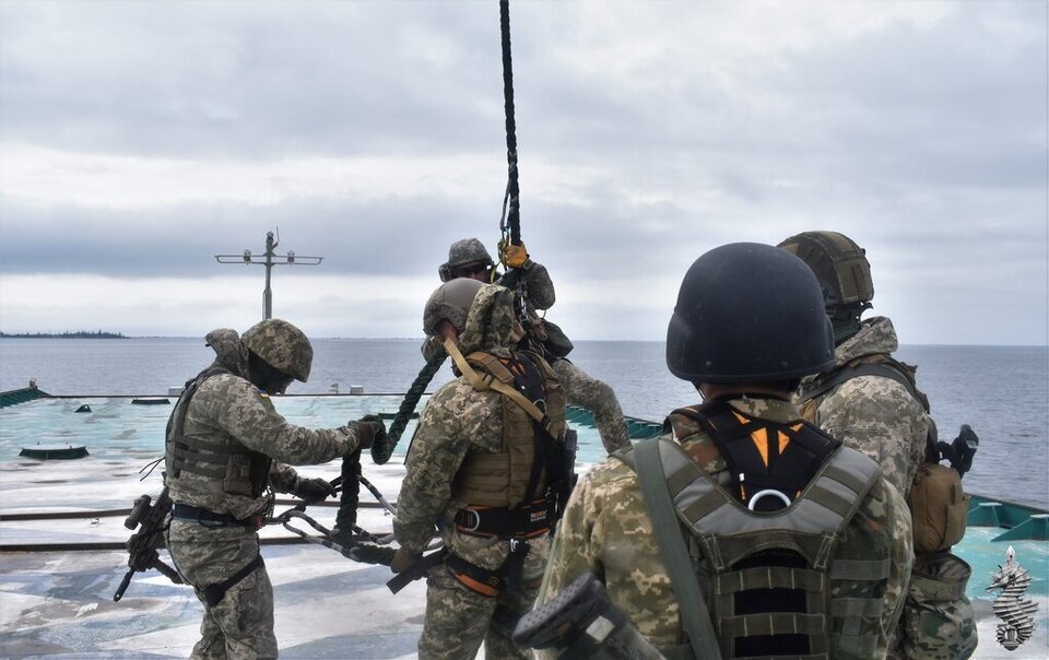 На своїй сторінці в Facebook вони оприлюднили фото з навчань. Така висадка є однією зі складових морських абордажних дій.