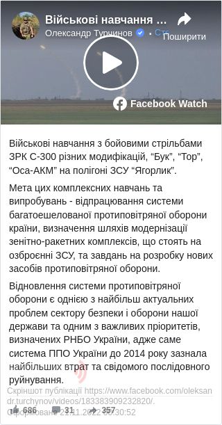 Також він написав, що система ППО України до 2014 року зазнала найбільших втрат і руйнування, тому її відновлення однією з найактуальнііших проблем сектору безпеки й оборони країни.