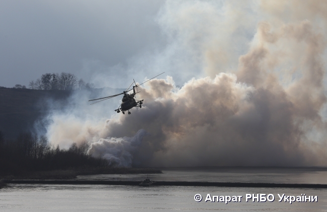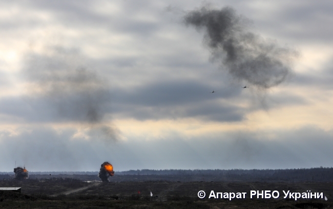За даними РНБО, на навчаннях були присутні президент Петро Порошенко, Секретар Ради нацбезпеки і оборони Олександр Турчинов та начальник Генерального штабу ЗСУ Віктор Муженко.
