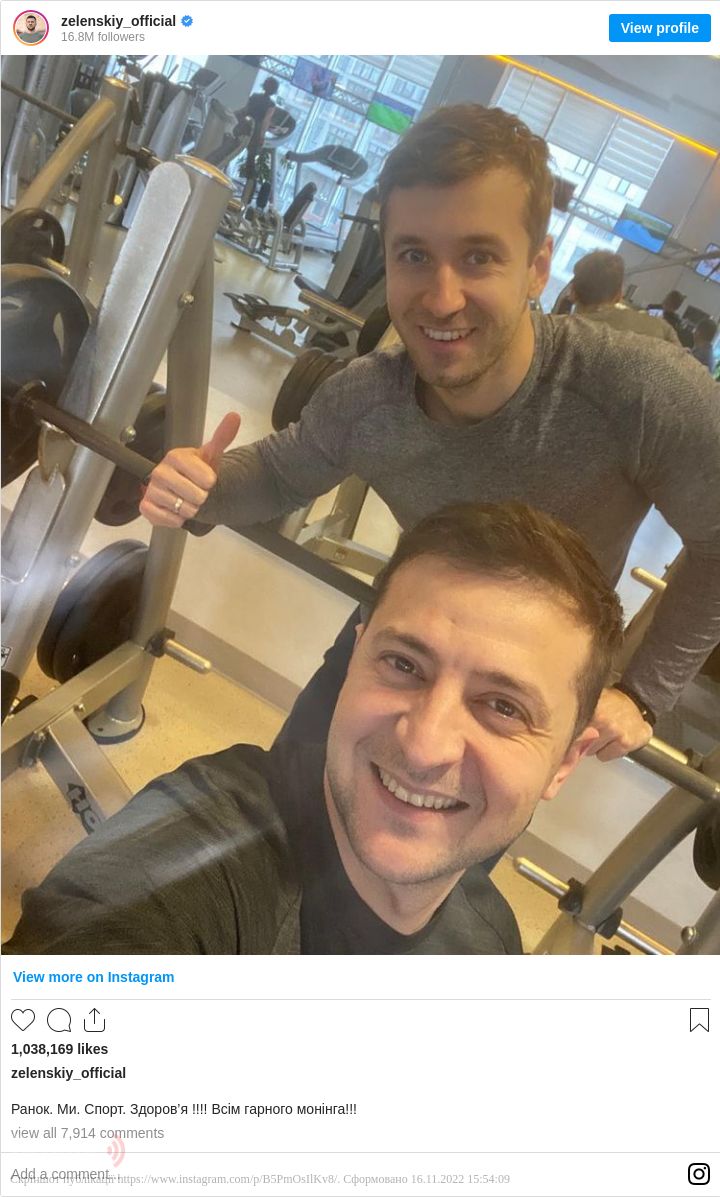 Гарант так підписав фото: «Ранок. Ми. Спорт».