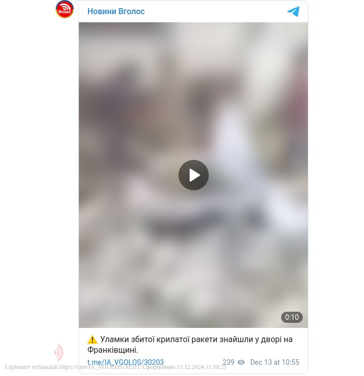 В одному із сіл Франківської громади уламки збитих ракет впали на обійстя, проте серйозних пошкоджень вдалося уникнути. Основний удар окупанти спрямували на об'єкти електро- та газової інфраструктури в області.