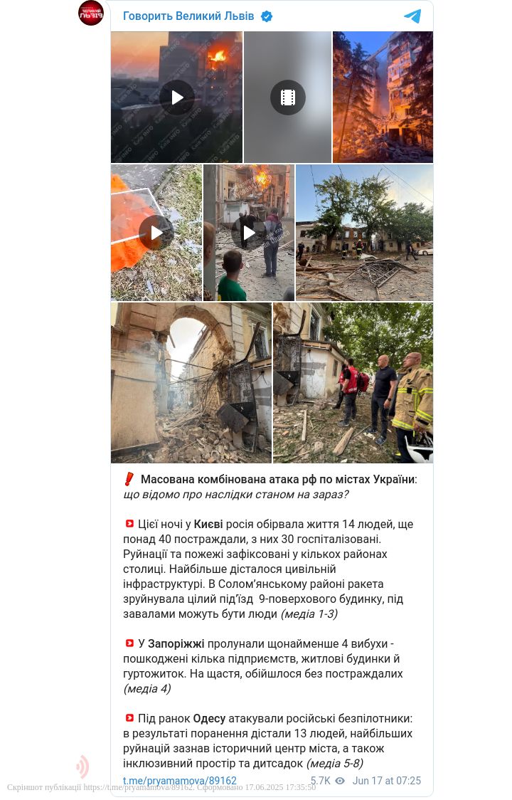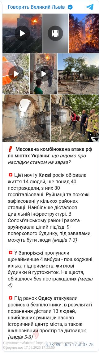 Під час російської атаки 17 червня, вночі уламок ракети влучила в гуртожиток Національного медичного університету імені П. Л. Шупика. Сам гуртожиток знаходиться у Шевченківському районі Києва.