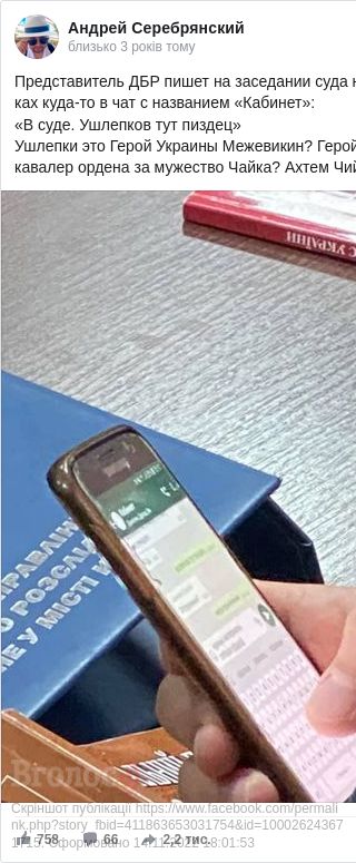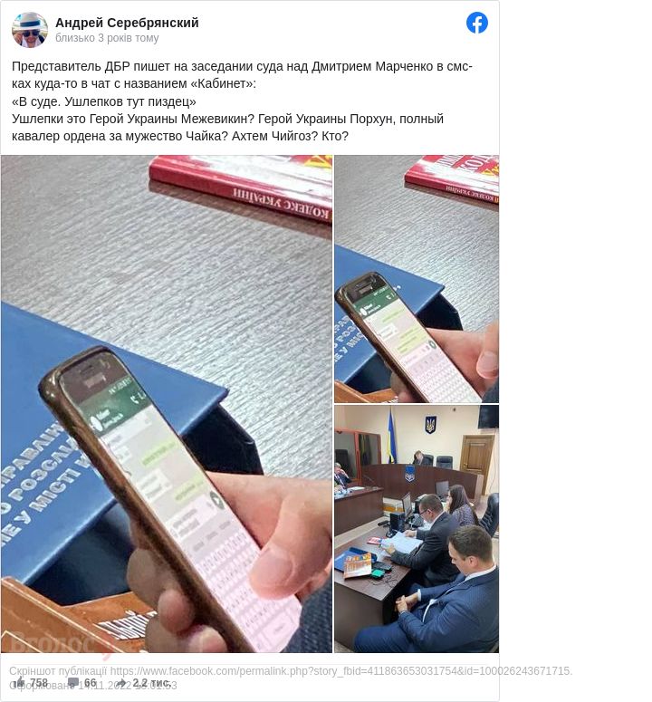 Повідомляється, що її сфотографували під час суду над начальником Головного управління розвитку і супроводу матеріального забезпечення Збройних Сил України, генерал-майором Дмитром Марченком.