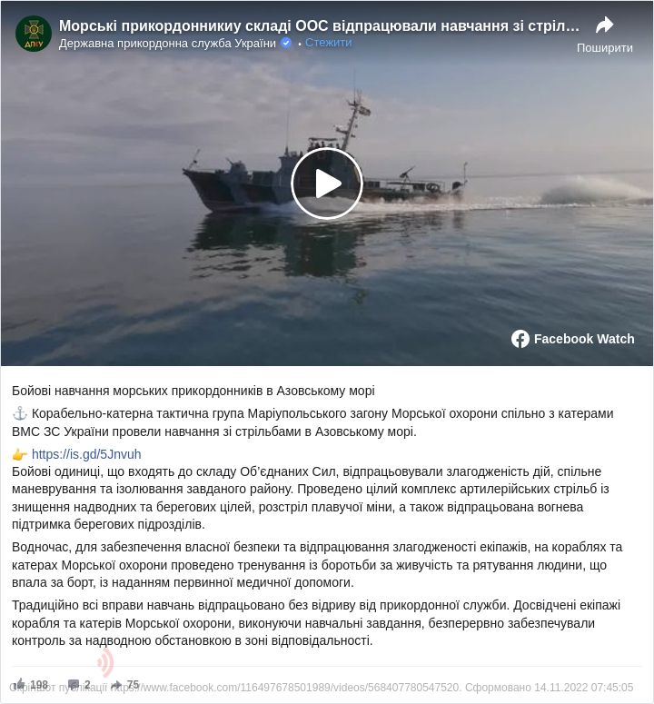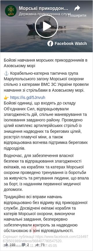 Раніше українські броньовані катери «Кременчук» і «Лубни» спільно з кораблем спеціального забезпечення «Онікс» морської охорони Державної прикордонної служби України провели навчання в Азовському морі.