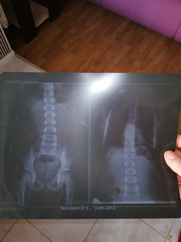 «Лікар терміново веде нас робити функціональну ендоскопію і попереджає: існує ймовірність, що чужорідне тіло опуститься по стравоходу, коли дитина буде вдихати газ для загального наркозу. Сина піддають загальному наркозу. Проводять ендоскопію. Однак вона не виявляє сліди стороннього тіла в стравоході», — написав Всеволод Некрасов.