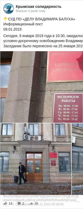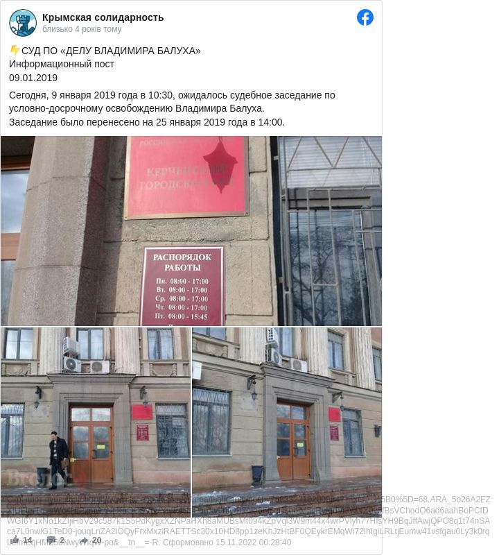 Згідно з інформацією, на сьогодні, 9 січня, було заплановано засідання в справі Балуха, утім його перенесли на 25 січня.